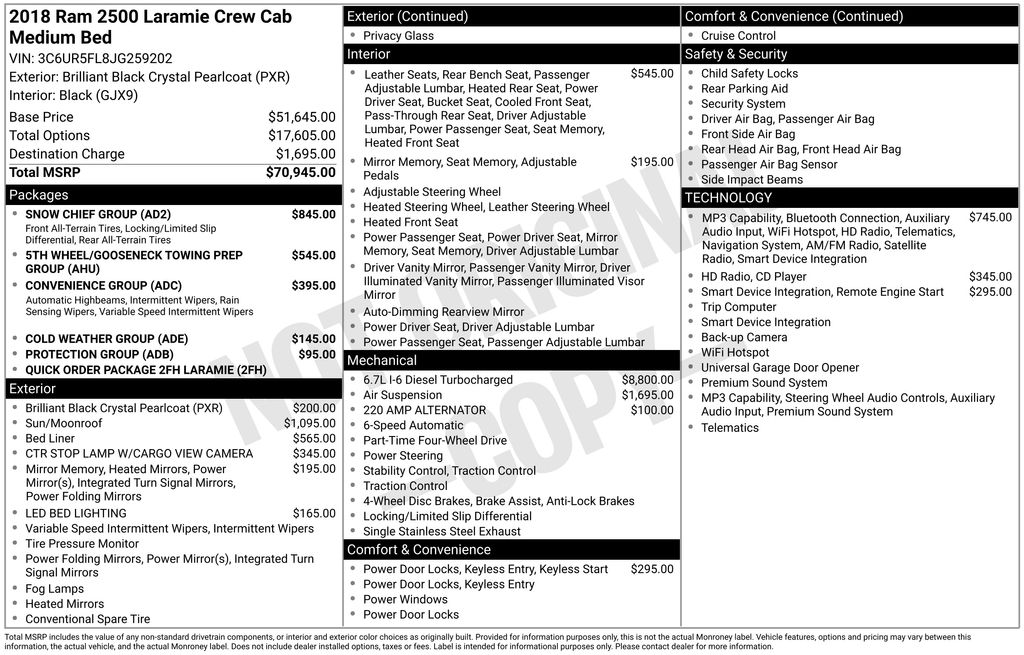 This 2018 Brilliant Black Crystal Pearlcoat Ram 2500 Laramie 4WD is well equipped and includes these features and benefits:
